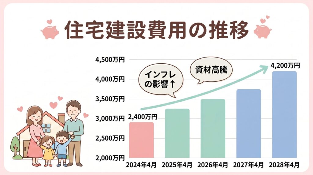 つまり、家の価格は「今日、今この瞬間」が一番安い可能性が高いのです。