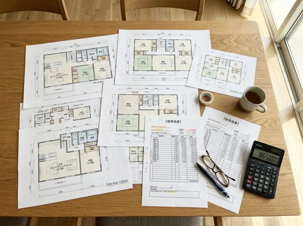 数日後、私のメールボックスには、6社からしっかりとした「自分専用の間取り図」と「資金計画書(総額の見積もり)」が届いていました。